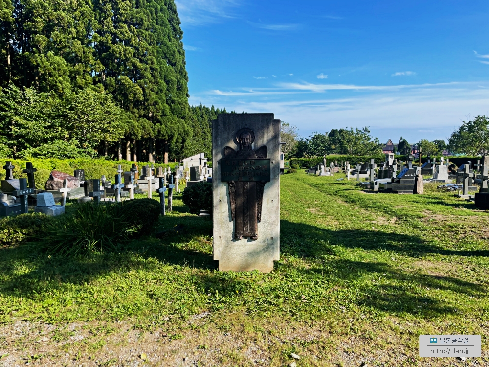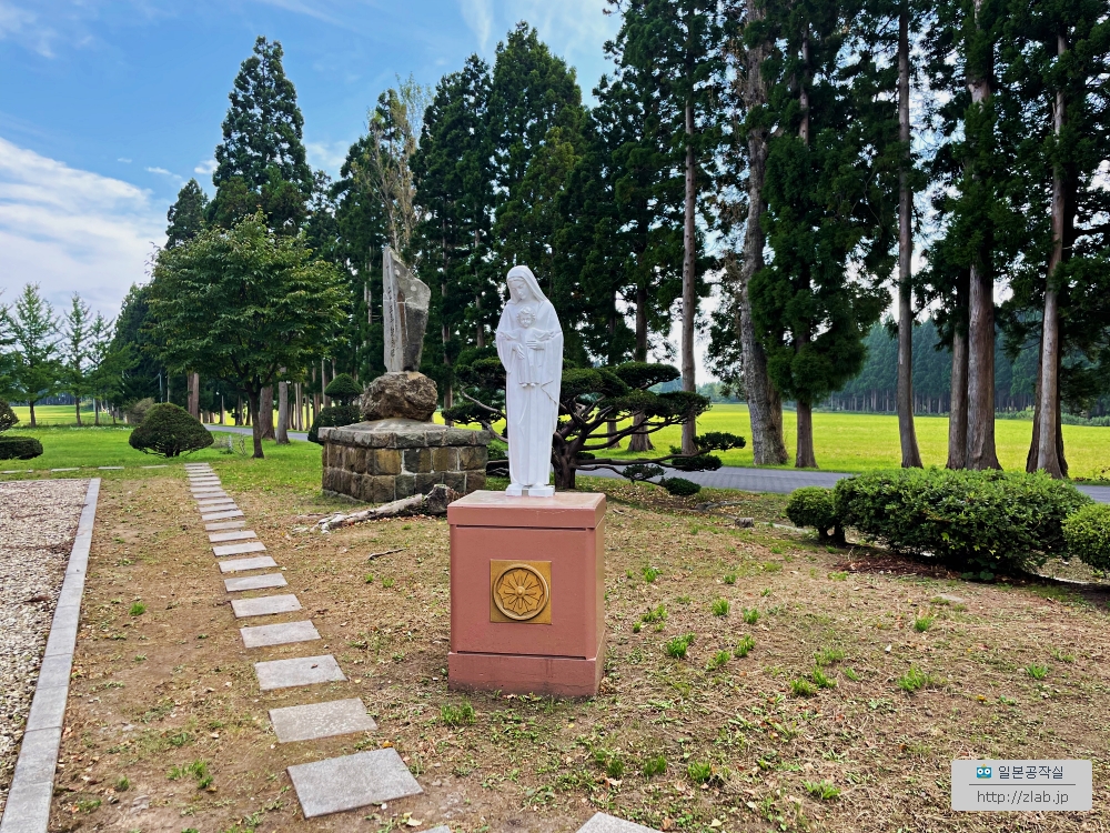 천사가 들고 있는 곳엔 "死は新しきいのちへの門(=죽음은 새로운 생명으로의 문) 토베츠성당 묘역"이라고 써있었어요. 죽음은 새로운 생명으로의 문이란 말은 정확히는 장례미사때 서창으로 쓰이는 信じる者にとって死は滅びではなく、新たないのちへの門であり... 믿는 자에겐 죽음은 없어지는게 아닌 새로운 생명으로의 문이며..에서 온 문구에요. 한국에서는 다른 표현이겠지만 일본에서는 이렇게 쓰는데 예전에 아는 신부님과 죽음에 대해 이야기할때 들었던게 생각났어요.