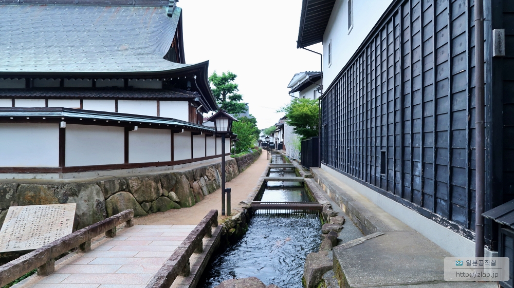 한쪽에선 물소리가 크게 들려왔는데요. 이 오래된 양조장의 흰벽과 수로에 물이 흐르는 풍경이 이곳 후루카와를 대표하는 풍경이에요.