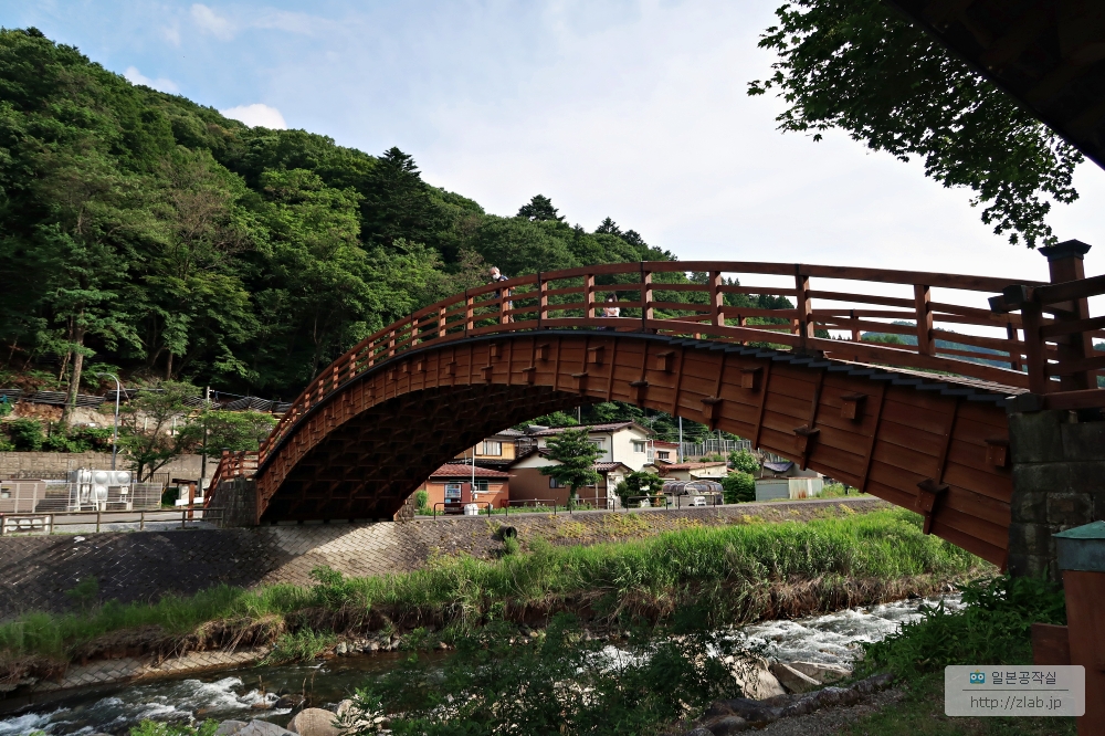 JR츄오혼센의 나라이역이 있어서 마츠모토나 시오지리에서 "비교적" 쉽게 갈 수 있는 곳이지만 산속이라 불편하긴 합니다. 나라이역은 하루 이용자가 70명정도되는 아주 작은 역이에요. 대부분 차를 이용하게 되는데요. 주차장에 차를 세우면 강을 건너야해요. 크기는 좀 작지만 예전 이와쿠니에서본 킨타이쿄같은 멋진 다리였어요.