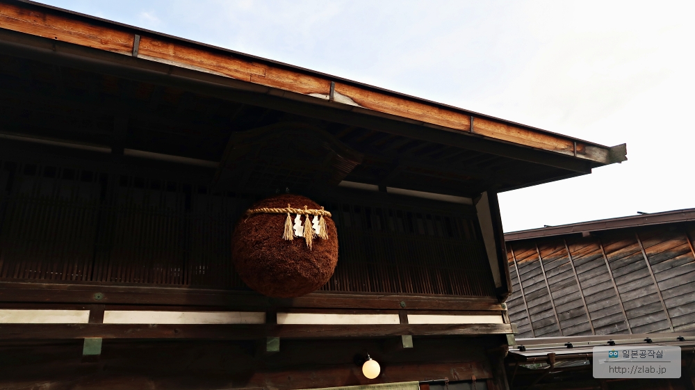오래된 양조장이 있었는데 술을 한병 살까하다가 사실 너무 더워서 땡기지가 않았어요 ㅋㅋ 저 구체는 스기타마라고 삼나무로 만든건데 양조장이나 술가게의 간판같은 역할을 해요. 처음엔 초록색인데 점점 말라서 색이 바뀌는걸 보고 술의 숙성상태를 알리는 용도지만 오래된 가게는 오래된 스기타마를 계속 달고 있고 저렇게 밧줄을 메어놔요. 저게 이쪽 신교에선 신이 깃들어 있다란 의미가 되요. 일단 그냥 아주 오래된거엔 다 신이 깃들어있다고 생각을 하죠.