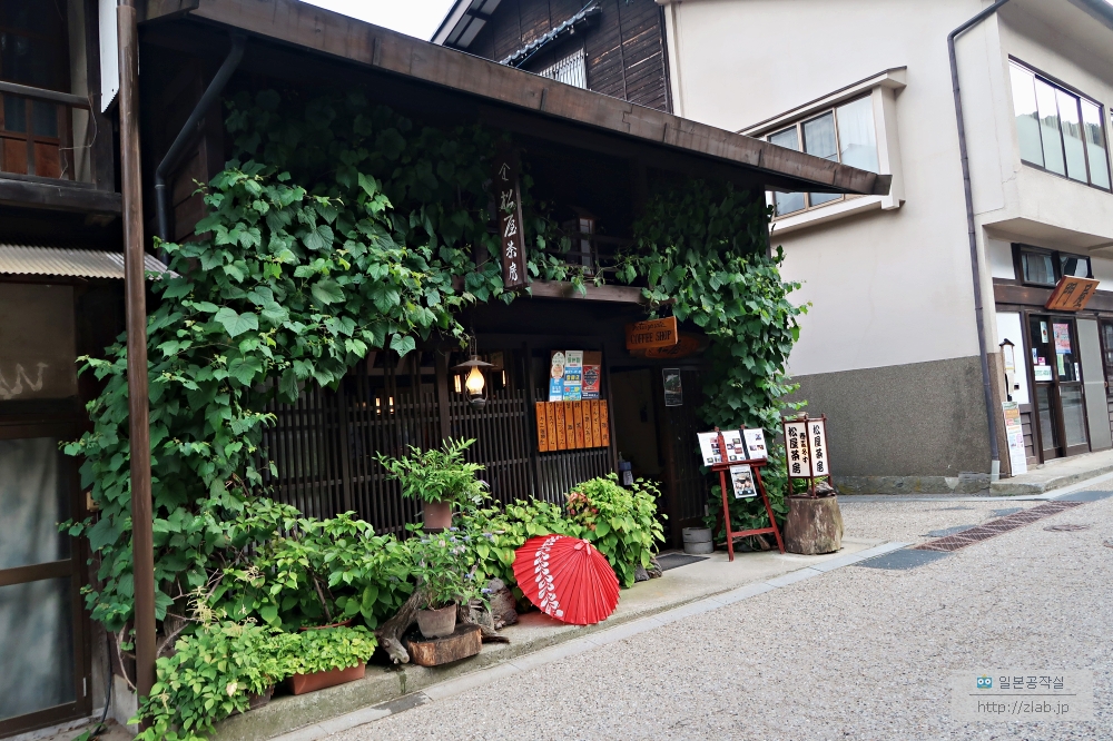 이 마을 길도 좀 넓고 그래서 츠마고나 마고메보다 쾌적한 마을이었는데요. 그만큼 당시에는 번성하던 마을이었던거였을거에요. 최신뉴스, 최신 유행도 역참마을을 통해 퍼져나가고 상인들은 교역을 했었구요. 파발마같은 행정편도 이곳을 거쳐갔어요. 특히 많은 상가가 있었는데 지금도 그 흔적을 많이 볼 수 있어요. 물론 그 당시와 같은 물건을 파는 가게들도 있고 간판은 옛날 그대로이지만 지금은 다른 걸 팔거나 카페나 식당이 된 곳도 있어요.