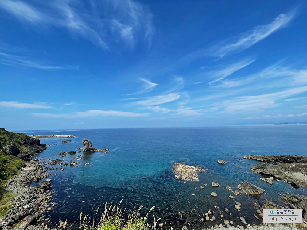 홋카이도의 서쪽끝 카미노쿠니(上ノ国)라는 곳에 갔을때 바다가 참 푸르고 깨끗했어요. 여기 마을의 직판장이 있었는데 이름이 몬쥬もんじゅ였어요. 몬쥬는 문수보살의 문수文殊를 뜻하는데요. 옛날부터 어부들이 왼쪽의 두꺼비같은 바위를 문수암이라 불렀고 이 바다를 문수의 바다文殊の浜라고 불렀었데요.