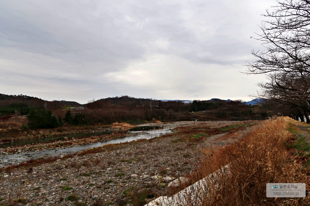 마을입구에는 강이 있었는데 천번을 꺽는다는 뜻의 치쿠마千曲강이에요. 이 강은 시나노강으로 더 많이 불리는데 나가노현에서만은 치쿠마강이라고 불러요.