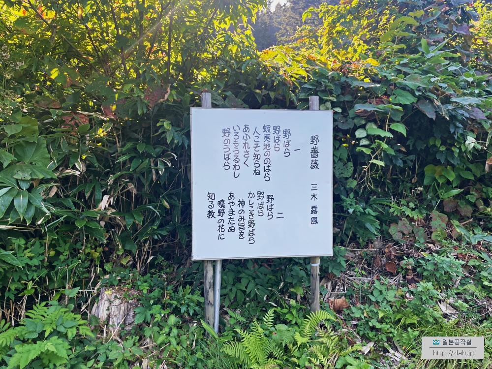 미키로후三木露風라는 1900년대 초기의 활약한 근대 문학가인데요. 시와 동요작사를 많이 했어요. 저 들장미란 곡은 꽤 유명해서 유튜브로 검색해보면 노래들이 나와요. 이 수도원은 학교를 열었었는데 그때 미키선생이 이곳에서 가르켰었때요. 그 학교는 지금 아래에 있는 시립중학교가 되어있어요.