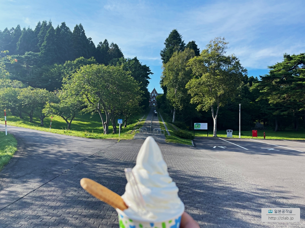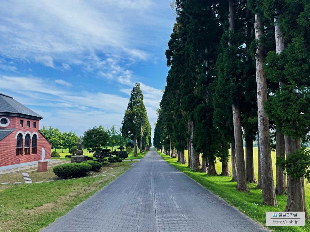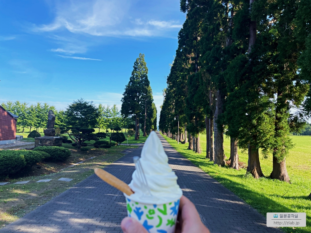 지난번 여름에 하코다테에 갔을때에요. 카미노쿠니를 들렀다 오는 길에 트라피스트수도원에 들렀어요. 정식 명칭은 등대의 성모 트라피스트수도원(灯台の聖母トラピスト修道院)이에요. 이 유명한 길게 뻗은 길의 풍경도 보고 싶었고 이곳의 명물은 소프트아이스크림도 먹어보고 싶었거든요.