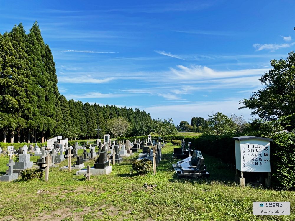 트라피스트회의 수도원은 어느 수도원이나 외부와 단절되어 있어요. 남성수도원은 트라피스트수도원, 여성수도원은 트라피스티느수도원으로 불리는데 일본에는 트라피스트가 여기와 오오이타, 트라피스티느는 하코다테와 효고, 토치기와 사가 네군데가 있어요. 한국에는 창원에 일본의 트라피스티느의 수녀님들이 세우신 수도원이 하나있는걸로 알아요. 견학도 가능한데 화요일에 딱 한팀만 가능하고 물론 남성수도원은 남성만 가능합니다. 그리고 예약은 반드시 엽서로 보내야해요.